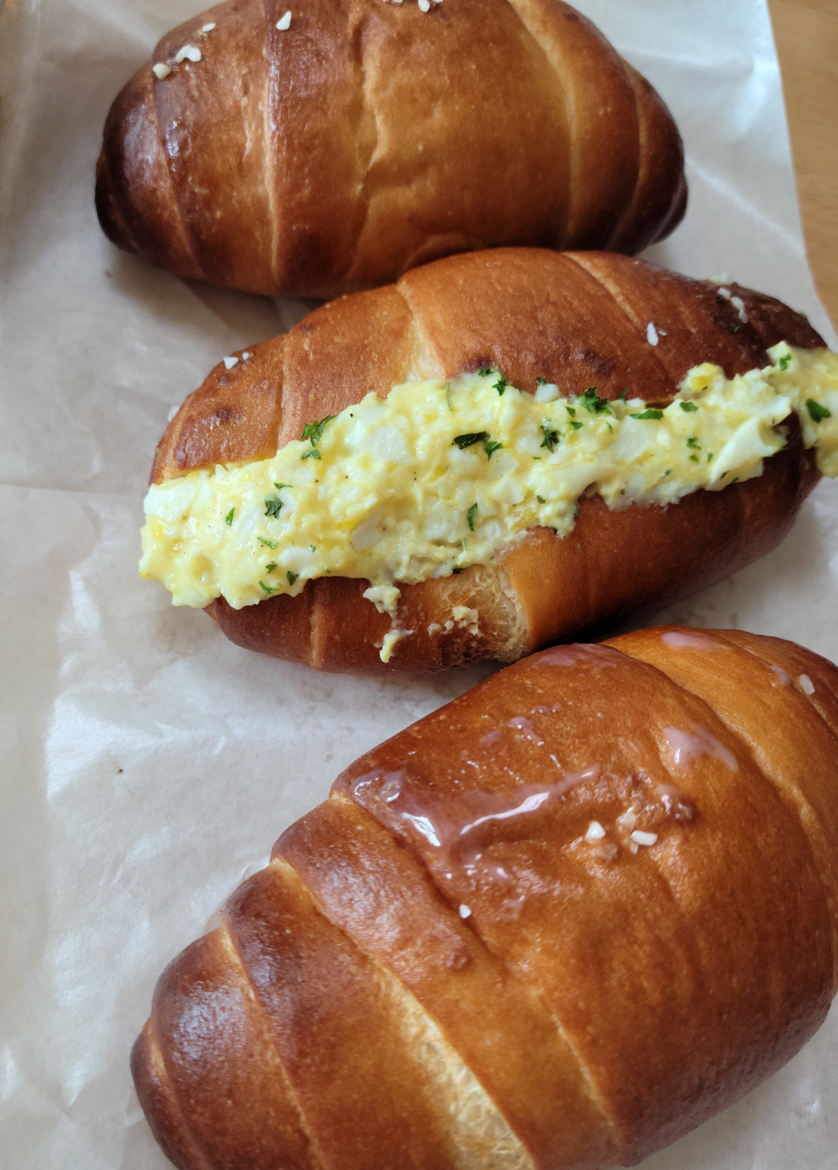 에그마요쌀소금빵은 비주얼에 비해 건강한 맛이었다. 마요네즈보다는 계란의 맛이 강하게 났는데 담백한 게 정말 맛있었다. 자극적인 맛을 좋아하는 언니는 이보다 마요네즈가 많이 들어가면 좋을 것 같다고 했다.