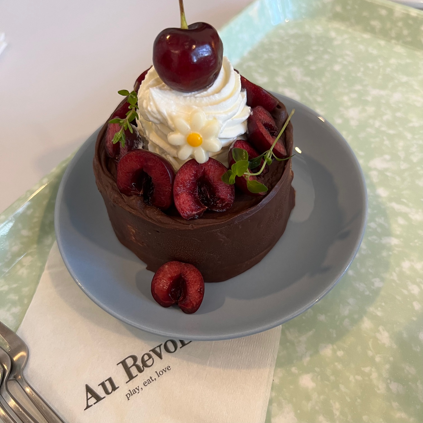 체리초코는 이름처럼 체리가 잔뜩 올라가 있는 초코케이크였다. 사실 나는 캔에 들어있는 체리를 먹고 선입견이 생긴 인간이라 체리 자체를 기피했었는데 오늘 친구가 이걸 먹고 싶다고 해서 주문했다. 근데 뭐야. 엄청 달고 맛있다. 체리 자체가 당도가 상당히 높아서 초코까지 더하기엔 부담스러울 정도로 체리가 달달했다. 초코케이크와 크림은 다크 초콜릿을 선호하는 내가 먹기에는 많이 달았다. 그래서 체리만 열심히 먹어줬다.