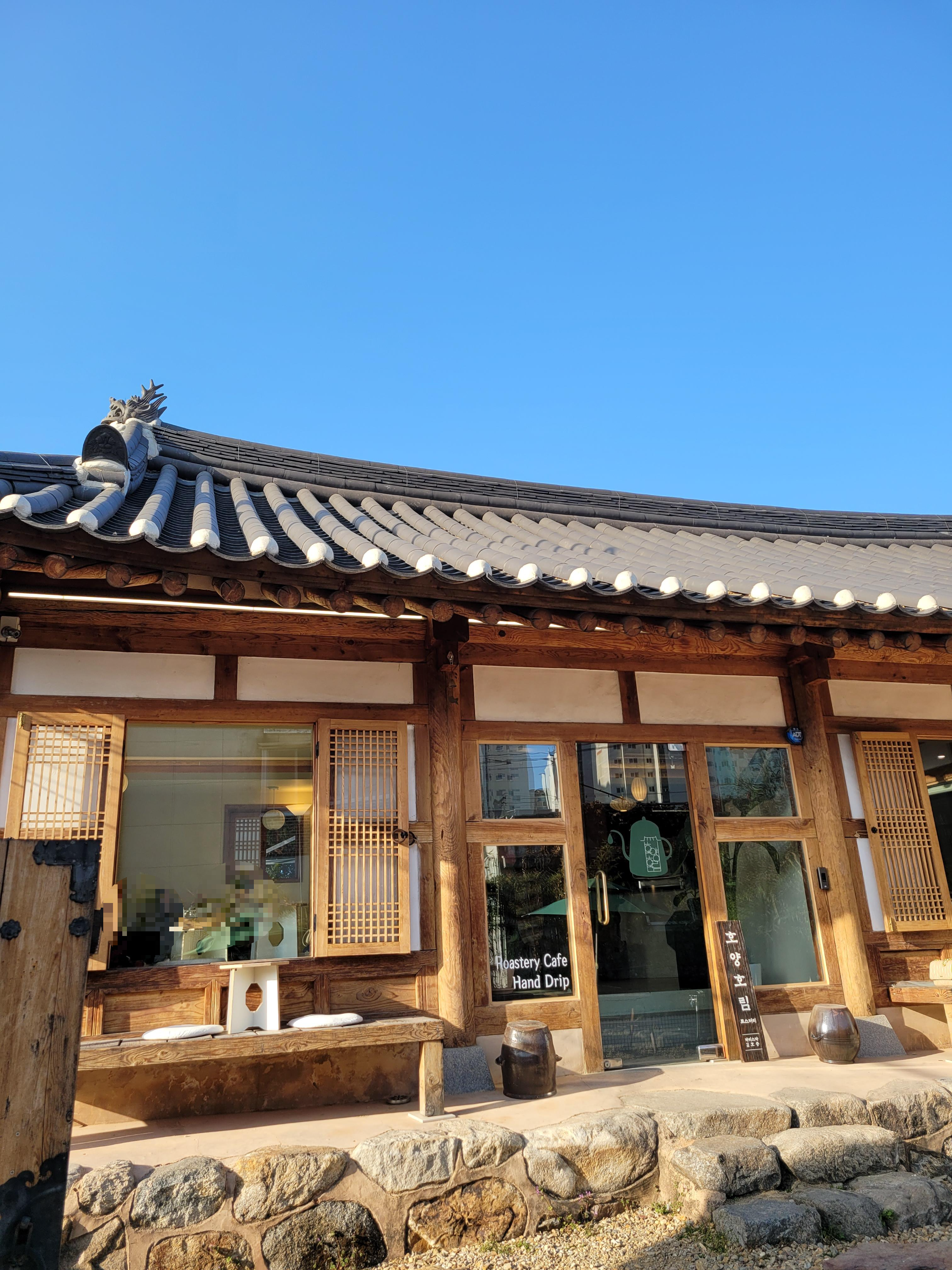 한옥 카페를 좋아하지만 딱 한옥만 있는 것이 아닌, 주변 경관과 어우러지면서 탁 트인 공간을 기대한 나로서는 조금 아쉬웠다.