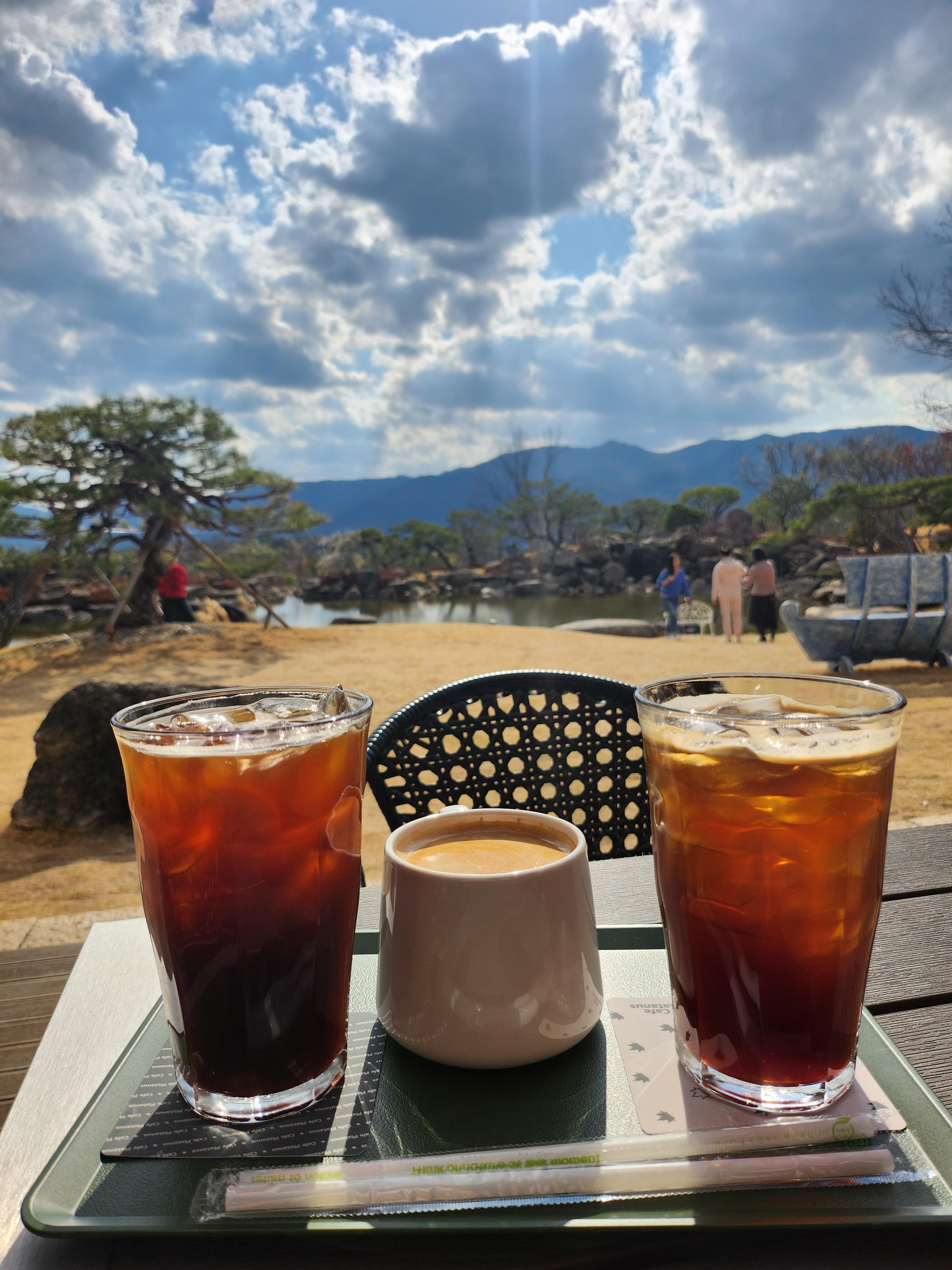 아이스아메리카노 2잔과 따뜻한 아메리카노 1잔을 구매했다. 커피는 6000원이다. 꽤 비싸지만 뷰값이라고 생각하면 납득이 된다. 아메리카노 맛은 커피 수혈이 급했던 시점이라 맛있게 먹었는데 특별하진 않은 맛이었다.